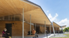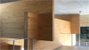 「シネジック(株)本社」 (宮城県富谷市) 外壁耐火構造を採用した木の香り漂うオフィス建築。 平面トラスをCLTパネルで引き寄せた立体屋根が見どころ。 | 意匠:UENOA architects 構造:ホルツストラ / KMC |